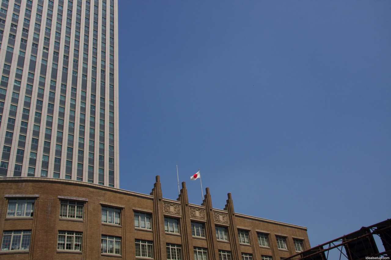 Tokyo buildings with a flag on top